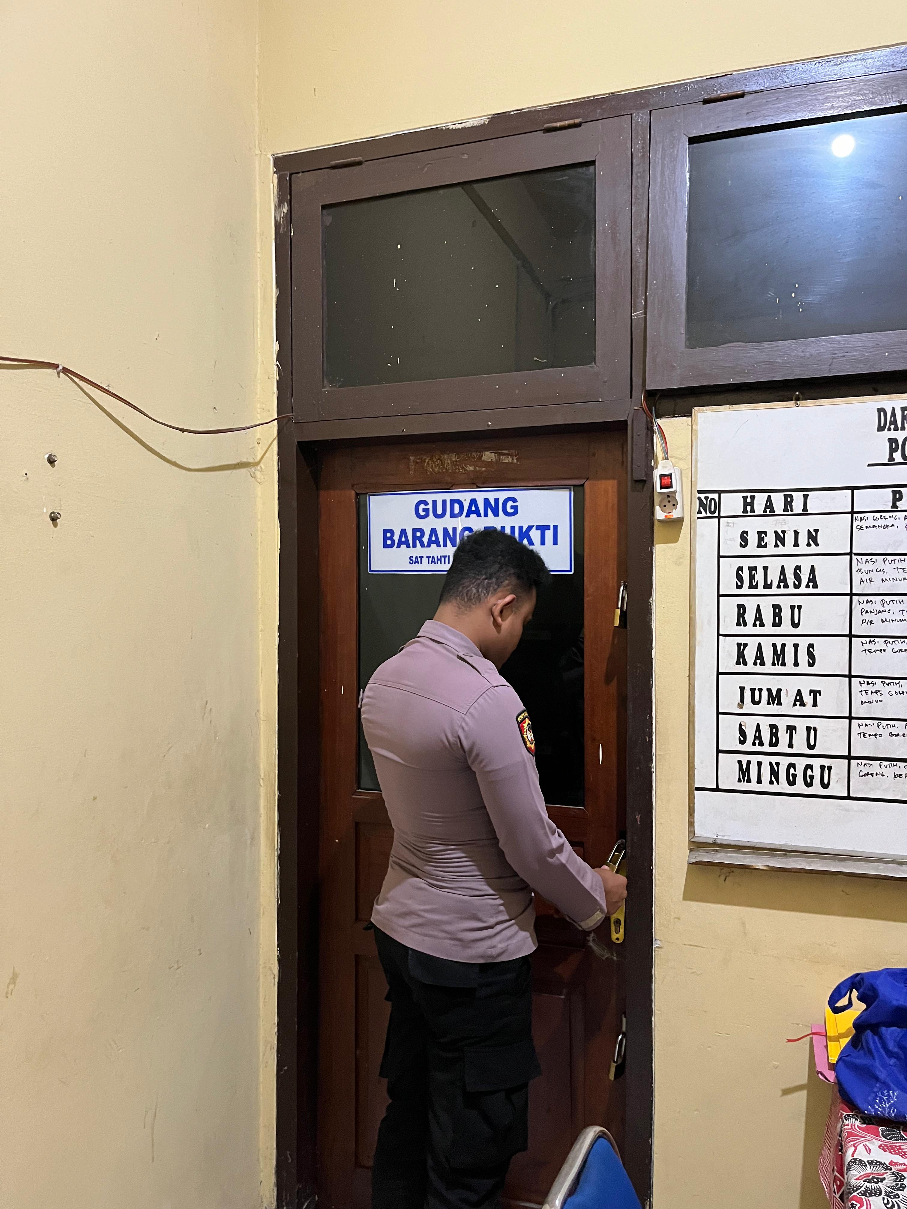 Kegiatan kontrol di gudang barang bukti dilaksanakan agar barang bukti dipastikan selalu dalam keadaan lengkap dan tentunya aman.