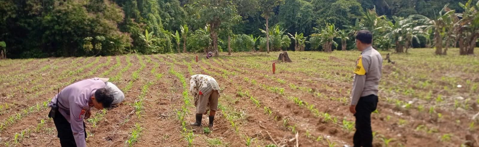 Polsek Anyar Cek Tanaman Jagung di Desa binaan