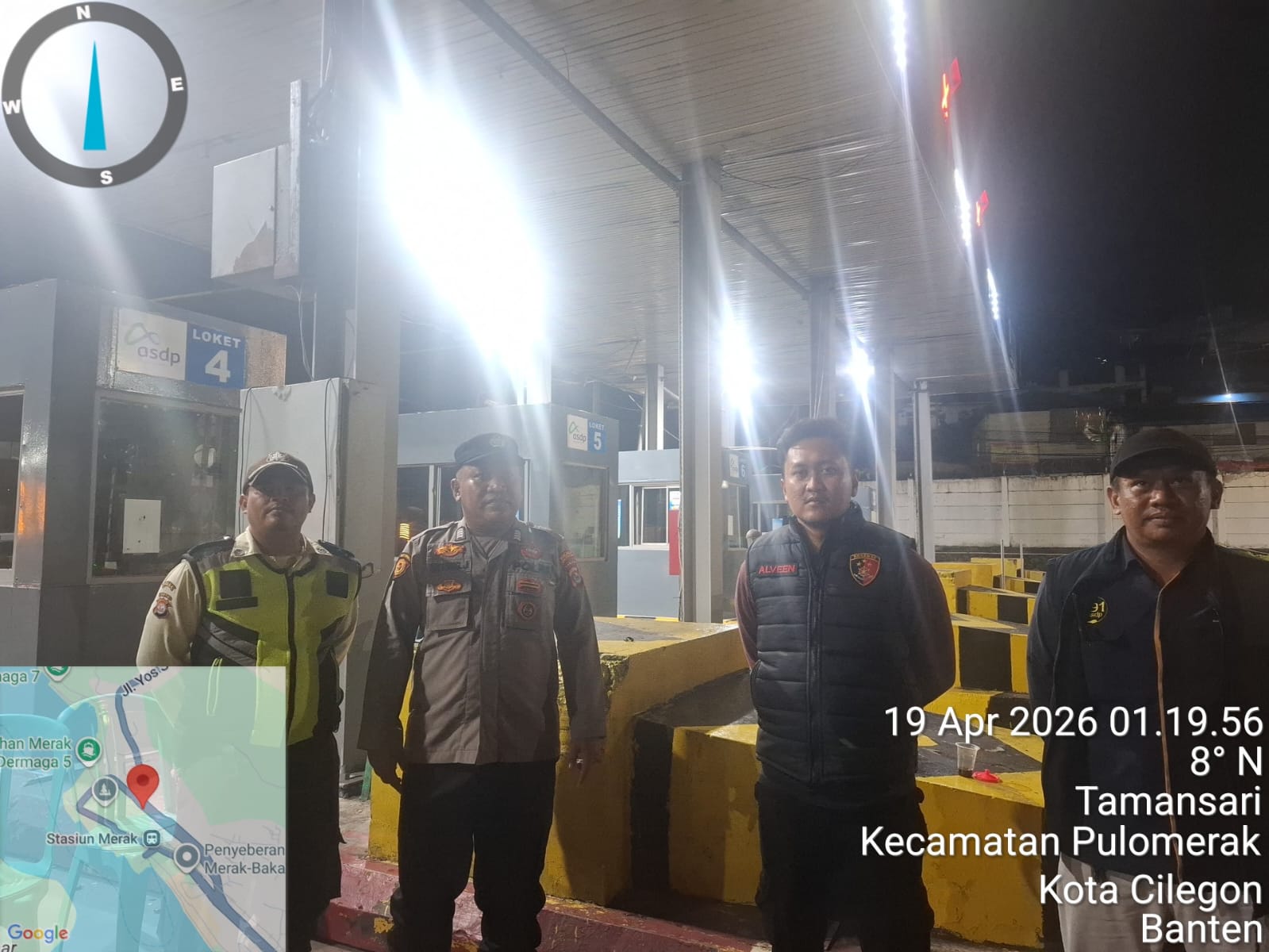 Cilegon - Personil Polsek Kskp Merak Polres Cilegon melaksanakan patroli di kawasan pelabuhan merak memberikan rasa aman dan damai, Minggu (19/04/2026)