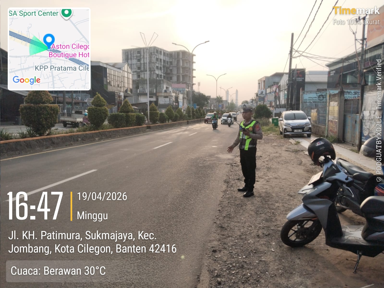 Cilegon, Satlantas Polres Cilegon Polda Banten – Berikan pelayanan kepada masyarakat Kasat lantas Polres Cilegon AKP Ridwan memerintahkan jajaran lalulintas untuk melaksanakan pengaturan lalu lintas di penggal – penggal jalan yang rawan kemacetan di Kota Cilegon, (Minggu,19/4/2026)