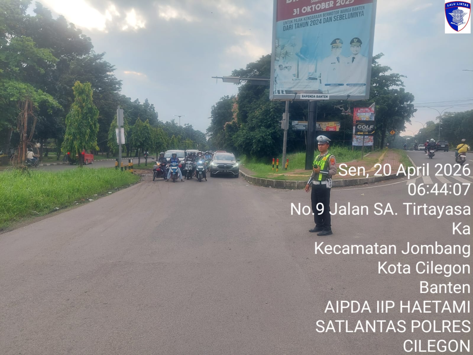 Cilegon, Satlantas Polres Cilegon Polda Banten – Berikan pelayanan kepada masyarakat Kasat lantas Polres Cilegon AKP Ridwan memerintahkan jajaran lalulintas untuk melaksanakan pengaturan lalu lintas di penggal – penggal jalan yang rawan kemacetan di Kota Cilegon, (Senin,20/4/2026)