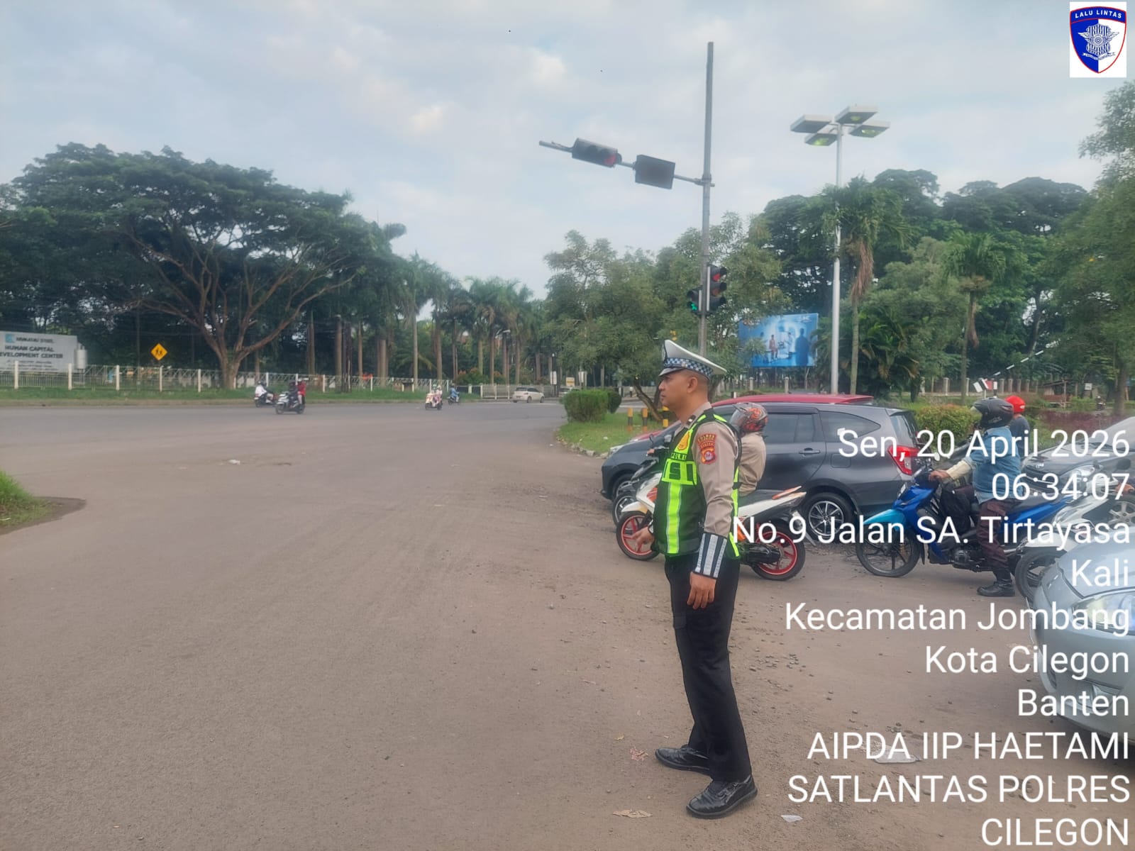Cilegon, Satlantas Polres Cilegon Polda Banten – Berikan pelayanan kepada masyarakat Kasat lantas Polres Cilegon AKP Ridwan memerintahkan jajaran lalulintas untuk melaksanakan pengaturan lalu lintas di penggal – penggal jalan yang rawan kemacetan di Kota Cilegon, (Senin,20/4/2026)