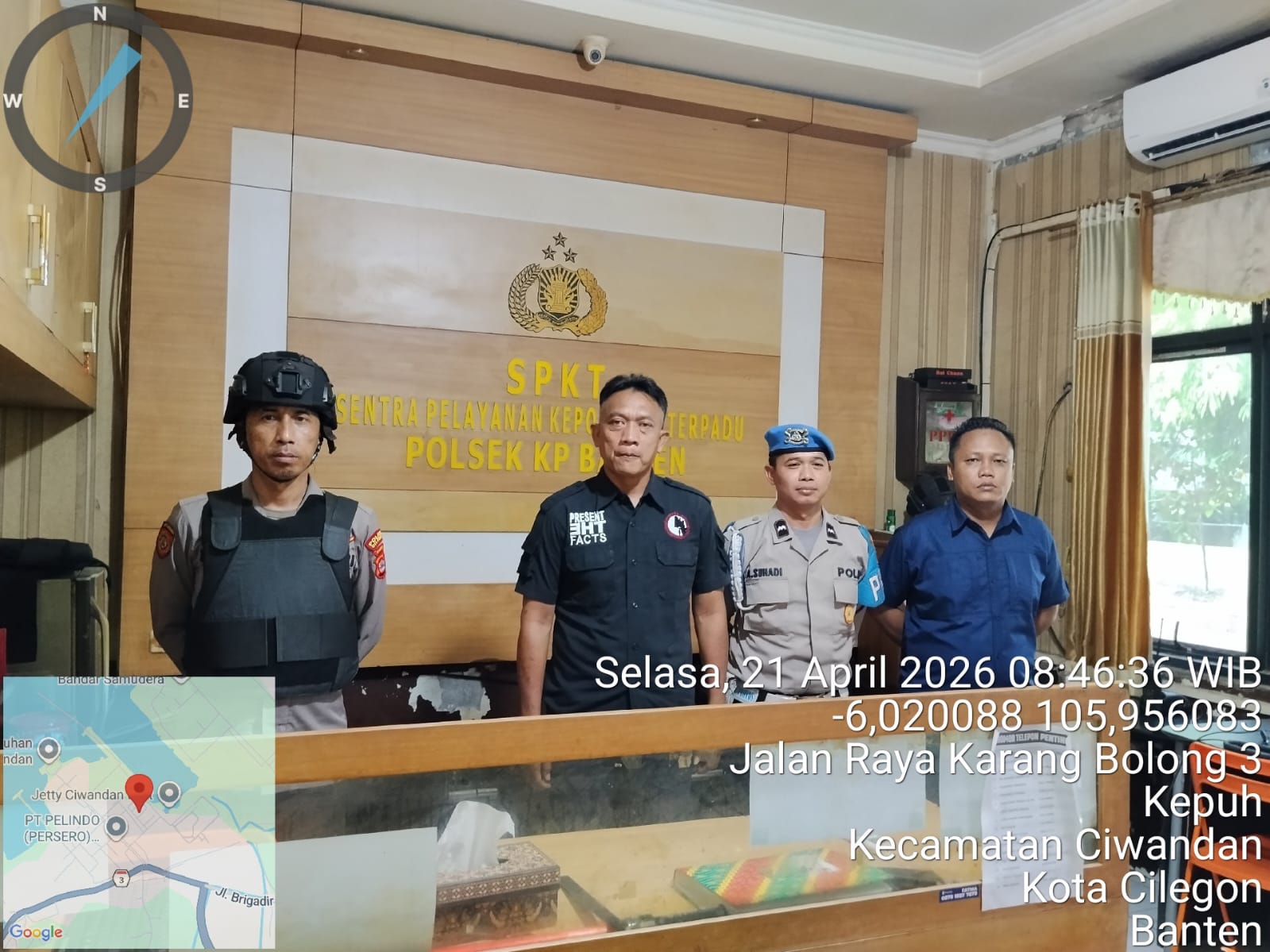 Cilegon.  Personel piket jaga Polsek Kskp Banten Polres Cilegon Polda Banten melaksanakan Pengamanan Mako Polsek, Selasa (21/04).