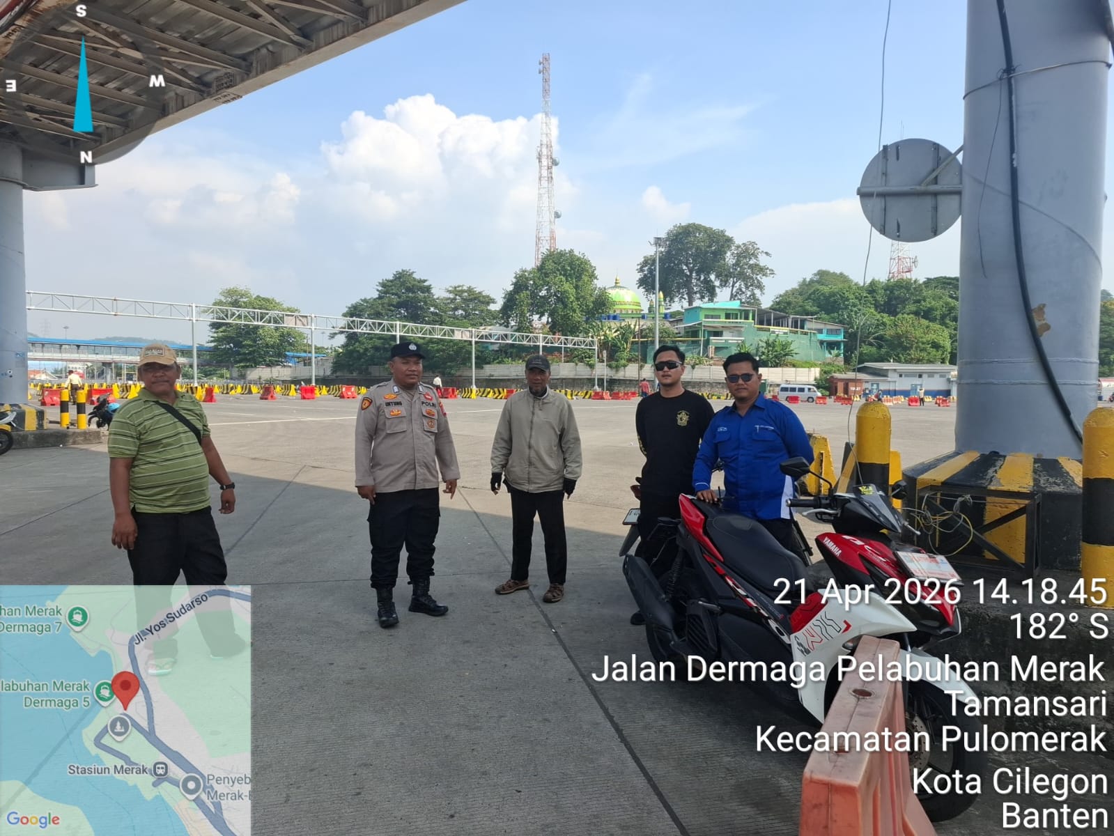 Cilegon - Personel Polsek Kskp Merak Polres Cilegon Polda Banten melaksanakan sambang dan patroli kawasan pelabuhan merak dalam rangka menjaga Harkamtibmas di Kawasan Pelabuhan Merak, Selasa (21/04/2026).