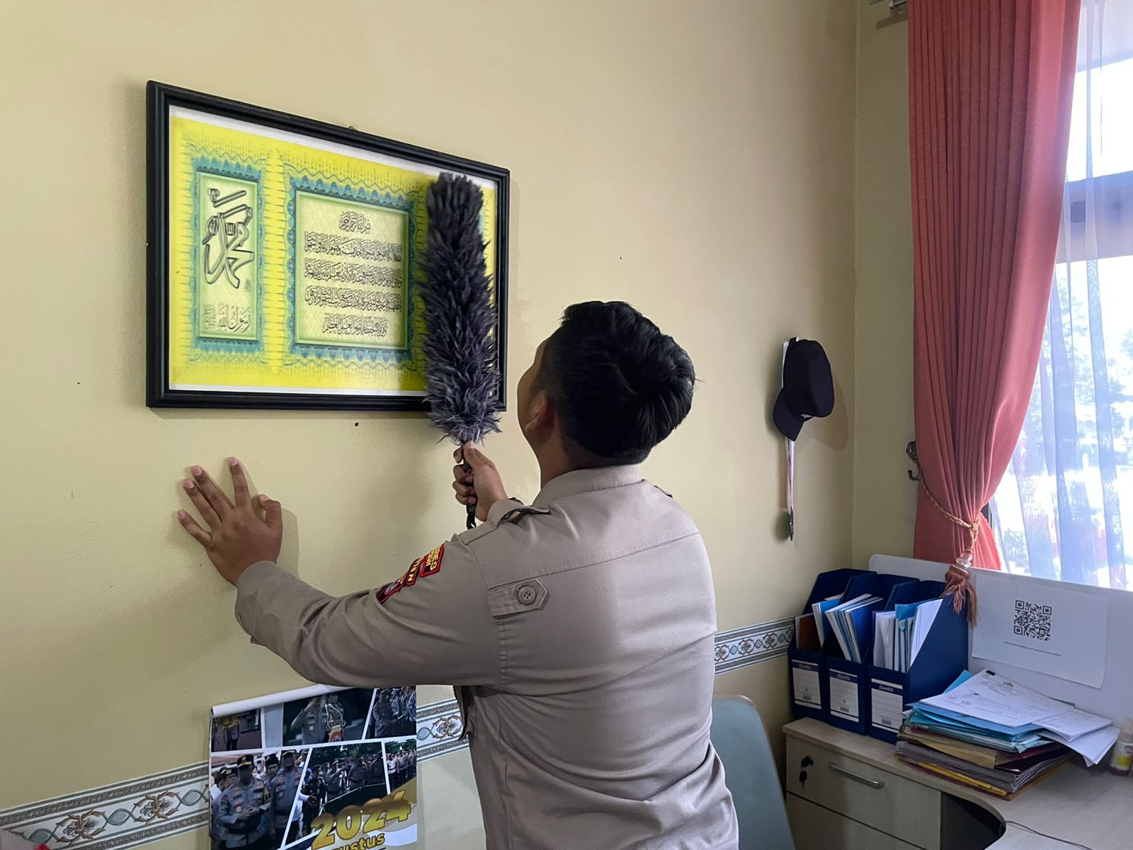 anggota SDM Polres Cilegon, dalam Pelaksanaan menjaaga kebersihan ruangan kerja setiap saat.