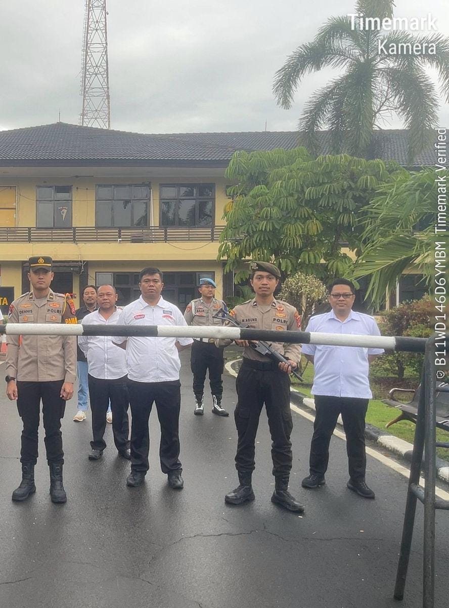 Cilegon, personel Satreskrim Polres Cilegon Polda Banten melaksanakan piket di penjagaan pintu masuk Polres Cilegon Polda Banten untuk memastikan mako Polres Cilegon dalam keadaan aman dan nyaman dalam melayani Masyarakat. Kamis (23/04/2026).