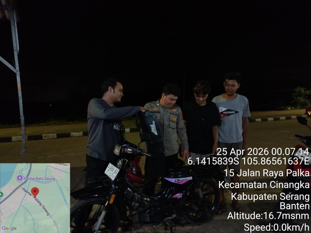 *Cilegon* – Dalam Rangka Pencegahan Kejahatan Jalanan dan Memelihara situasi keamanan dan menjaga serta memberikan rasa aman dan nyaman di masyarakat,Salah satu upaya untuk mewujudkan hal tersebut sebagaimana yang dilakukan oleh Personil Polsek Cinangka Polres Cilegon Polda Banten melaksanakan giat patroli blue light malam hari hingga menjelang pagi, Sabtu (25/04/2026).