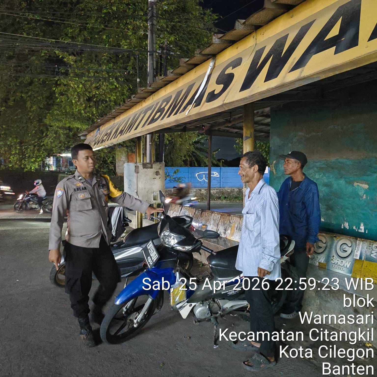 Cilegon - Guna mengantisipasi gangguan kamtibmas di Daerah hukum Polsek Ciwandan, Personil Polsek Ciwandan Polres Cilegon Polda Banten Selalu menggelar patroli malam Kedaerah Pada Jam Yang Dianggap Rawan hingga dini hari, Minggu (26/04/2026).
