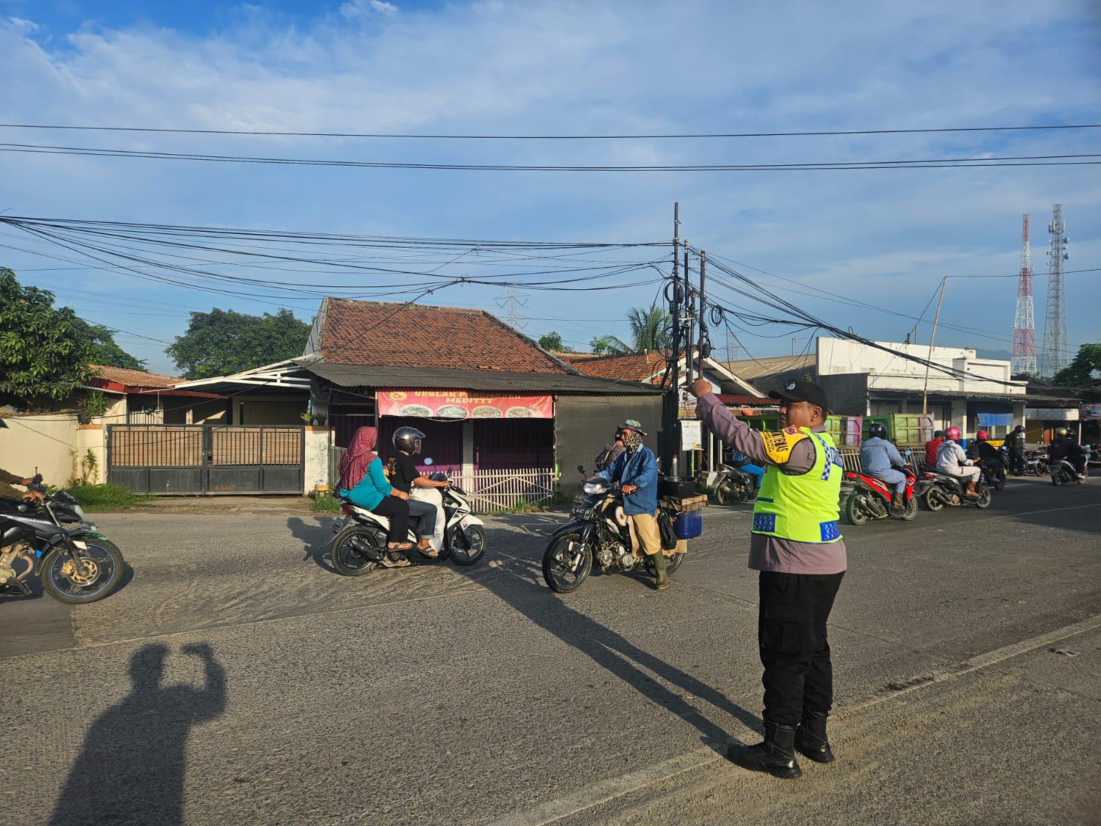 Sigap di Berikan Kelancaran, Anggota Bhabinkamtibmas Polsek Bojonegara Laksanakan Pengaturan Lalu Lintas di Simpang Wadas